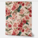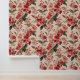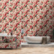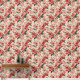 A lively red hibiscus watercolor floral pattern on a soft pink background.