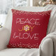 "Frieden, Freude und Liebe." Ein lustiges, spielerisches, Imitat goldener Glitzer und weiße Schneeflocken-Illustration und modern, sans serif Typografie auf einem reichen, roten Hintergrund helfen Ihnen, in der Ferienzeit. Weiße Konfetti und Imitate goldene Punkte oben und unten ergänzen das Aussehen. Auf der Rückseite ist eine riesige Imitat Goldfolie und eine weiße Schneeflocke über Rot. Genießen Sie die Wärme und Freude der Ferien, wann immer Sie sich auf diesem atemberaubenden, modernen, grafischen Kissen entspannen, werfen. Passende Karten, Umschläge, Aufkleber, Totbeutel, Packpapier, Serviertablette, Zuhause Dekor und vieles mehr sind ebenfalls erhältlich. Ein tolles Geschenk für jemanden, der etwas Besonderes ist! Sie können dieses Kissen leicht personalisieren. Bitte schicken Sie mir eine Nachricht mit Fragen oder Wünschen.