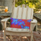 blutroter Himmel und kobaltblaue Dogwood-Blätter mit einem Hauch von Aqua auf diesem bunten Throw Kissen