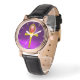 Uhr, Kinderuhr aus Edelstahluhr mit lila Lederarmband