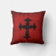Rote Velvet sehen wirbelkissen aus. © Dunkles Herz Wünsche. Ein roter Samt-Look wirft Kissen mit einem schwarzen Kruzifix darauf.