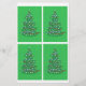 Malerei eines Weihnachtsbaumes in weißen Kugeln, rotes Band und blaues Band geschnitten, vier Mal auf Schreibwaren abgebildet. Kann die Bilder auseinanderschneiden, um sie bei Scrapbooking zu verwenden. Kann auch mit Text angepasst werden.