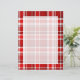 Dieses karierte rot-weiße Buchstabenkopf hat ein sich wiederholendes, kartanisches Muster, das leicht strukturiert ist. Es ist ein helles, stilvolles kariertes Muster, das Ihre Briefe hervorhebt. Der mittlere Raum ist mit einem halbtransparenten weißen Raum gefüllt, sodass man Platz zum Schreiben hat.