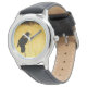Uhr, Vintage Männeruhr mit schwarzem Lederarmband