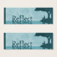 Ein grün-blau strukturierter zeichn mit der Silhouette eines Mannes, der unter einem Baum sitzt, durch einen Teich, der darüber nachdenkt. Das Wort "Reflektieren" Erholungen auf der Seeoberfläche, Text und Schatten, die sich im vollkommen stillen Wasser widerspiegeln.
