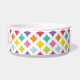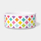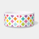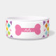Hell farbige Regenbogen-Diamant-Druckhundeschüssel mit rosa Knochenrahmen für die Personifizierung mit dem Ihrem Namen des Haustieres.
