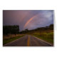 Ein doppelter Regenbogen konvergiert mit einer Straße, Minas Gerais, Brasilien, 2015.