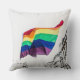 Dies ist ein großartiges Bild der Regenbogenflagge, die mit einem Schwarz-Weiß-Bild von Gebäude im Hintergrund fliegt. Schönes und starkes Symbol des Stolzes.