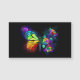 Regenbogen, leuchtend, künstlerisch bemalt Monarchen Schmetterling mit einem Bouquet aus glänzenden, hellen, leuchtenden Rose auf schwarzem Hintergrund. Regenbogenschmetterling.