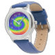 Kinderuhr aus Edelstahl mit blauem Lederarmband