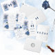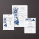 Feine Rosen in Blau und Weiß mit Akzenten im Bridgerton Regency-Stil umgeben zwei klassische Kamele eines Weibchens und des anderen Männchens, alle Set auf einem knackigen, weißen Hintergrund.