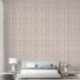 vertical stripes with stylized lotus, papyrus floral, leaves, and geometric shapes motifs evoke a sense of natural symmetry and sophistication.