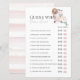 Diese elegante "raten Sie, wer Braut oder Bräutigam?"-Brautparty-Spielkarte enthält einen rosa Koffer, einen Strohhut, eine Sonnenbrille und Rose in Aquarell. Auf der Rückseite ist ein weißer Hintergrund mit rosa Streifen in Aquarellfarbe. Personalisieren Sie Ihre Bedürfnisse. Mehr passende Produkte finden Sie in meinem Geschäft.
