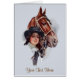 Vintages Reittier-Bild mit einer jungen Frau in schwarzem Hut, die die Brille ihres Pferdes hält. Kunst von Harrison Fisher, und sorgfältig retuschiert, um Farbe und Details wiederherzustellen.