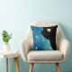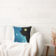 Schönes Porträt einer schwarzen Katze mit grünlichem Goldauge in den einigen Schatten des Blaus mit Weiß spritzt Aquarellhintergrund. Die Rückseite des Kissens ist gerade Aquarellbild ohne die Katze. Dieses ist eine digitale Illustration.