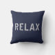 Kopfkissen mit "Relax"-Schriftzeichen im modernen, weißen urbanen Schriftart auf dunkelblauem Hintergrund.