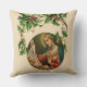 Das ist ein wunderschönes religiöses Weihnachtsbild der gesegneten Jungfrau Mary, die den Jesus-Baby im Manöver bewundert. Holly-Blätter und Beeren umschließen das Kopfkissen.