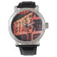 Uhr, Vintage Männeruhr mit schwarzem Lederarmband