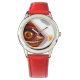 Kinderuhr aus Edelstahl mit rotem Lederarmband