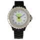 Reloj de pulsera de Diamantes (Imitación) para mujer, brillo intenso, correa de esmalte blanco y negro personalizado. Diseñado pour CAPIGRAFICOS