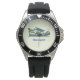 Uhr, Vintage Männeruhr mit schwarzem Lederarmband