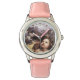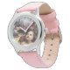 Kinderuhr aus Edelstahl mit rosa Lederarmband