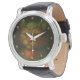 Uhr, Vintage Männeruhr mit schwarzem Lederarmband