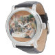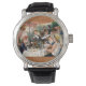 Uhr, Vintage Männeruhr mit schwarzem Lederarmband