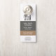 Ein Türaufhänger in Braun- und Grautönen mit einer Abbildung wie Hammer, Schraubenzieher, Farbwalze, Handsäge, Schlüssel. Vollständig anpassbar, kann es für alle Arten von Reparaturarbeiten wie Handyman, Zuhause-Reparaturservice, Installationen, etc. geeignet sein.