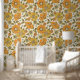 Retro 70er Floral Orange Gold Muster Tapete