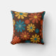 Dieses Retro der frühen 70er Jahre farbenfrohe, blumengeschmückte gemusterte Designerkissen in einem braunen Senforange und einer blauen Farbpalette macht eine sehr stilvolle Ergänzung zu jedem Zuhause-Interieur, ob modern, Retro oder minimalistisch. © Julie McIver