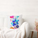 Instantly transform your living room sofa, reading chair, or bedroom into a vibrant, creative sanctuary with this breathtaking abstract floral throw pillow. The artwork features a stunning, vertical arrangement of fluid, psychedelic flowers. The highly saturated, translucent overlapping petals in shades of bright magenta, cyan, and deep blue create a mesmerizing visual depth against the crisp, white canvas-textured background.