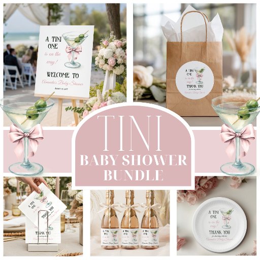 Retro A Tini One Martini Pink Bow Girl Baby ShowerDesignt von Tetiana Domushkina