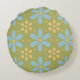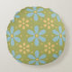 Retro Abstrakt Blau und Gelb Blumen auf Grün Rundes Kissen
