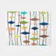Dieses inspirierte Kunstdesign aus der Mitte des Jahrhunderts hat Diamanten in vielen Größen und Farben. Es erfasst die Vintage modernistische Ästhetik der 1950er Jahre.