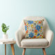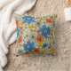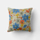 Dieses Kopfkissen im Retro-Blumenmuster mit Blume und Blätter in Orange-, Blau- und Gelbtönen.