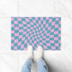 Retro Blue Pink Warped Checkerboard Checked Fußmatte
