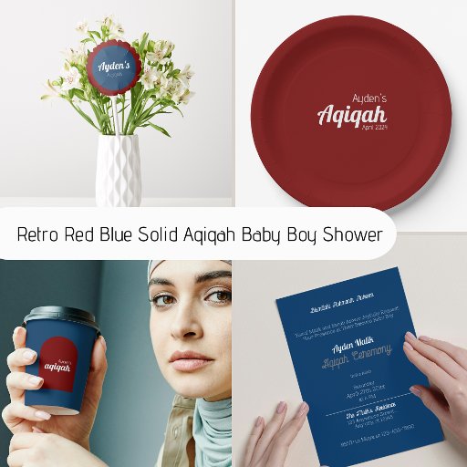 Retro Red Blue Solid Aqiqah Baby Boy ShowerDesignt von Presti Dina