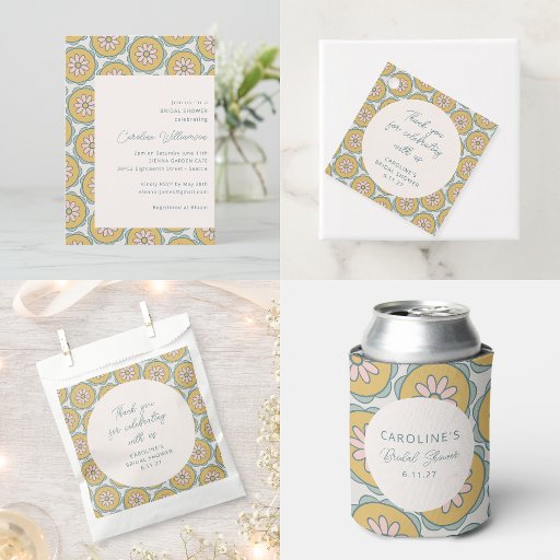 Retro Boho Script Sage Yellow Floral Bridal ShowerDesignt von Opal Ellery