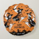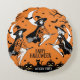 Ein fröhliches und elegantes Halloween-Design mit glamourösen Button-Up-Hexen, festlichen Jack-o'-Laternen und spukhaften Silhouetten, alles Set vor einem lebhaften Orangenbild.