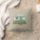 Ein Kissen, das eine Illustration auf Front eines retro inspirierten Camperanhängers mit rosa Plastikflamingos auf vorderem Rasen kennzeichnet. Personifizieren Sie die Front mit Ihrem Namen.