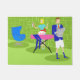 Diese Retro Cartoon-Paar-zu Hause Tür-Matte ist sizzling heiß! Sie kennzeichnet ein Fünfzigerjahre Paar, das zum Tag fertig wird. Sie sind in einem vibrierenden grünen Raum mit einer grünen Ziegelsteinwand hinter ihnen stehend. Zur Seite ist ein heller blauer Eistuhl. Stehend hinter einem bügelnden Brett des heißen Rosas, eine hübsche, blonde Ehefrau hält ein Eisen. Sie trägt ein einfaches Türkishauskleid, das nach einer Krönung passend sucht. Um ihre Taille ist ein flouncy, eine weiße Schürze mit einem roten Waistband und Akzente. Ihr Türkis beschuht zusammenbringen tadellos ihr Kleid. Selbstverständlich tun sie! Der Ehemann der Frau ist aus zur Seite stehend und liest eine Zeitung. Er trägt ein hellblaues KleiderShirt, eine orange Krawatte und eine Anzugsjacke des königlichen Blaus. Er würde zur Arbeit ganz bereit schauen, wenn seine zusammenpassenden Königsblauhosen nicht über das Bügelbrett umschlungen wurden. Er kann nicht zu seinem Büro sehr gut gehen, in dem er mysteriöse Aufgaben durchführt, die niemand durchaus in seinen weißen Boxerkurzschlüssen versteht. Oh, mein! Welche verrückte Verstümmelung folgen würde, wenn er sich traute, den zu versuchen!