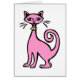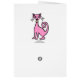 Eine rosa Pussy-Katze im Retrostil, mit einem goldenen, rautengepolsterten Kragen. Ein Original gezeichnet von Nicolette Amanda Berry.