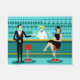 Mit dieser Retro Cocktail Lounge Door Mat ist jede Stunde eine Happy Hour. Das moderne Design aus der Mitte des Jahrhunderts besticht durch einen lebhaften, minimalistischen Stil der 1960er Jahre, einen Cartoon, der von einem klassischen Cocktail-Bar zeichne. Vor der Kulisse einer Wasserwand können wir eine Reihe von Gläsern sehen. Zumindest können wir die aquamarinen Silhouetten von Gläsern sehen. Aufgrund der Gestalt des Stickereis ist dieses Bar gut ausgestattet, um Ihre Pfeife zu nassen, ganz gleich, was Ihr Getränk bevorzugt. Ein kompetenter und persönlichster Barkeeper ist die Besetzung des aquamarinen Bar mit gelben Akzenten. Der junge Barkeep trägt ein unberührtes, weißes Shirt mit schwarzer Bogen-Krawatte. Sein frisch aussehendes gutes Aussehen, seine blonden Haare und seine schwarzen Hipster-Brillen geben uns allen Grund zu der Annahme, dass er entweder seine Tage als Schauspieler oder Superheld verbringt. Auf der einen Seite gibt der hübsche Mixologe einem Kunden auf der anderen Seite der Bar einen Martini. Der gewartet Kunde ist ein weitläufiger Gentleman in schwarzem Anzug und roter Krawatte. Er ist der Typ, der als groß, dunkel und gut aussehend beschrieben wird, selbst wenn es noch Stunden bis zum Ende der Zeit ist. Es scheint einen roten und chromen Bar mit dem Namen von Herrn Debonair zu geben. Doch um nicht vorauszusehen, frage er die Frage: "Entschuldige mich. Ist dieser Platz frei?" Er frage den ravenhaarigen Gal auf dem benachbarten Bar. Sie ist ein richtiger Typ von "Mädchen nebenan", wenn Sie zufällig neben einer makellosen Schönheit leben, mit einer Figur, die nicht aufhört. Sie trägt ein schwarzes Kleid und hält einen Martini in einer Hand. Sie hofft, dass sie und der nahende Gentleman mehr gemeinsam haben, dass ihre Getränkevorlieben und die Wahl der Kleiderfarbe. Es sieht so aus, als got dieser Abend einfach interessant. Herzlichen Glückwunsch!