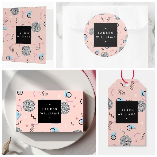Retro Confetti Memphis Muster Pink Flat Notecard MitteilungskarteRetro Confetti Memphis Muster Pink Flat Notecard Mitteilungskarte (Rückseite)Retro Confetti Memphis Muster Pink Flat Notecard Mitteilungskarte (Vorderseite/Rückseite Beispiel)