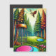 Retro-Disc-Golfplatz mit Adler, der über die Kiefern fliegt, ai Art mit Vintagen Farben und Camping-Ambiente.