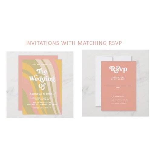 Retro Groovy 70s Green Pink Yellow Wedding SetDesignt von Maria G