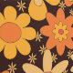 Das ist Retro-70er Vintages, groovy blumengeschmücktes Muster in Orange und Gelb über dunklem Hintergrund. Es ist großartig aussehende Tapete für Frauen, die Liebe Retro 70er Blumendesigns