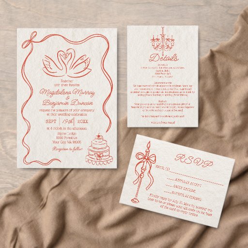 Retro Hand-Drawn Sunset Orange WeddingDesignt von Margarita A
