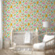 This is cute wallpaper featuring happy smiling cats surrounded by simple retro-style flowers in orange, pink, and peach. A fun and cheerful wallpaper for kids room, teen girl room or anyone who love cats and enjoys cute and playful patterns.